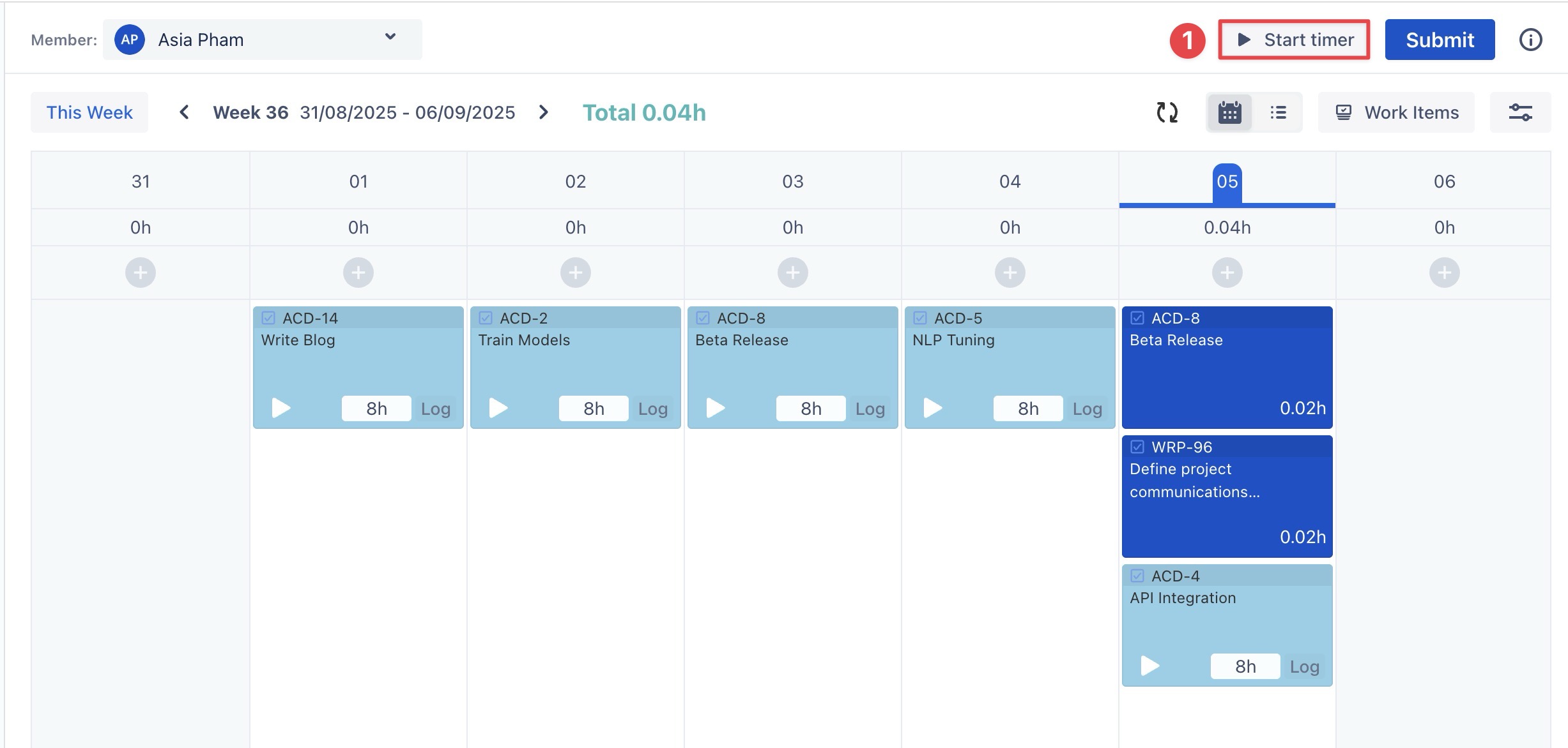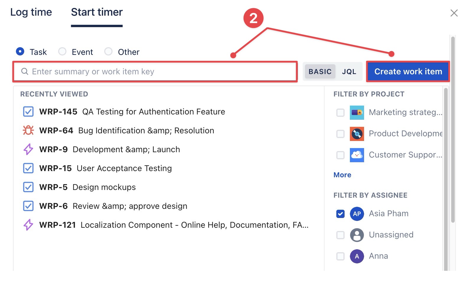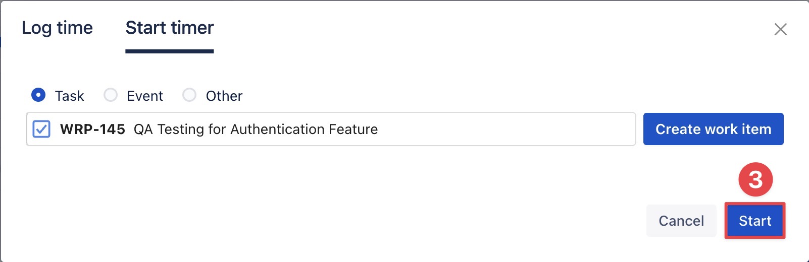 2. Start Timer on Jira Work Item