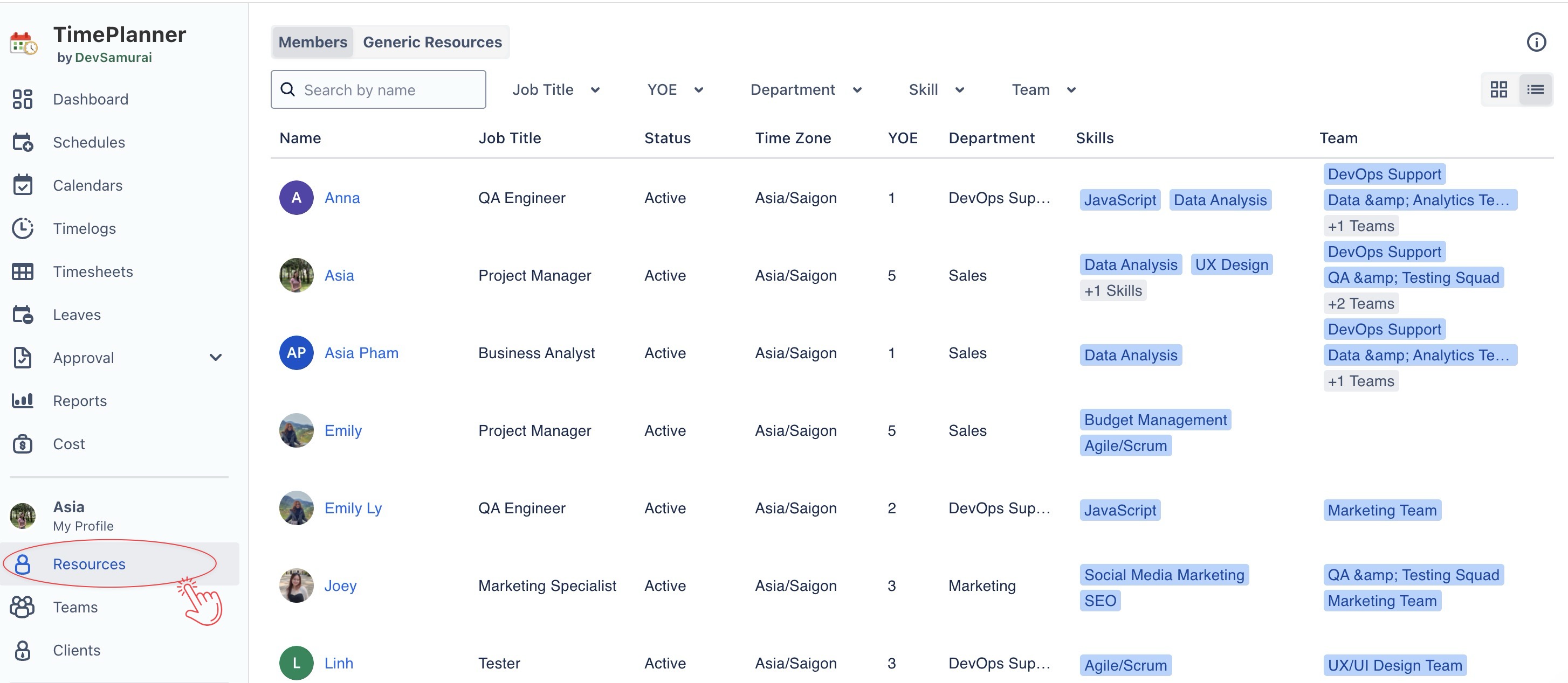 Resource Management in TimePlanner allows managers and team leads to track team availability, workload, and capacity to optimize allocation across projects and manage cost rates. Resources refer to both individual team members (Jira users) and generic resources (virtual placeholders or physical assets).
