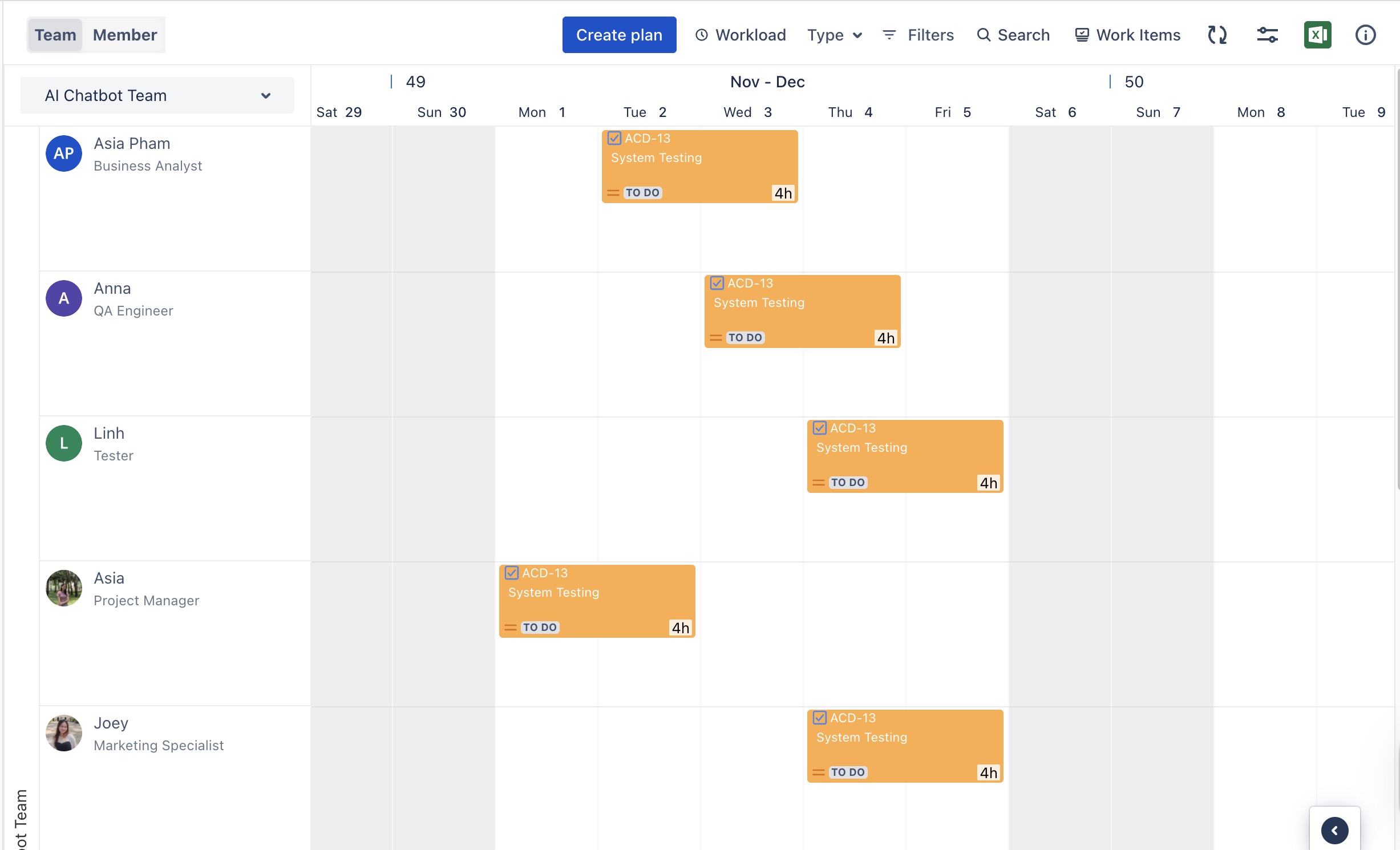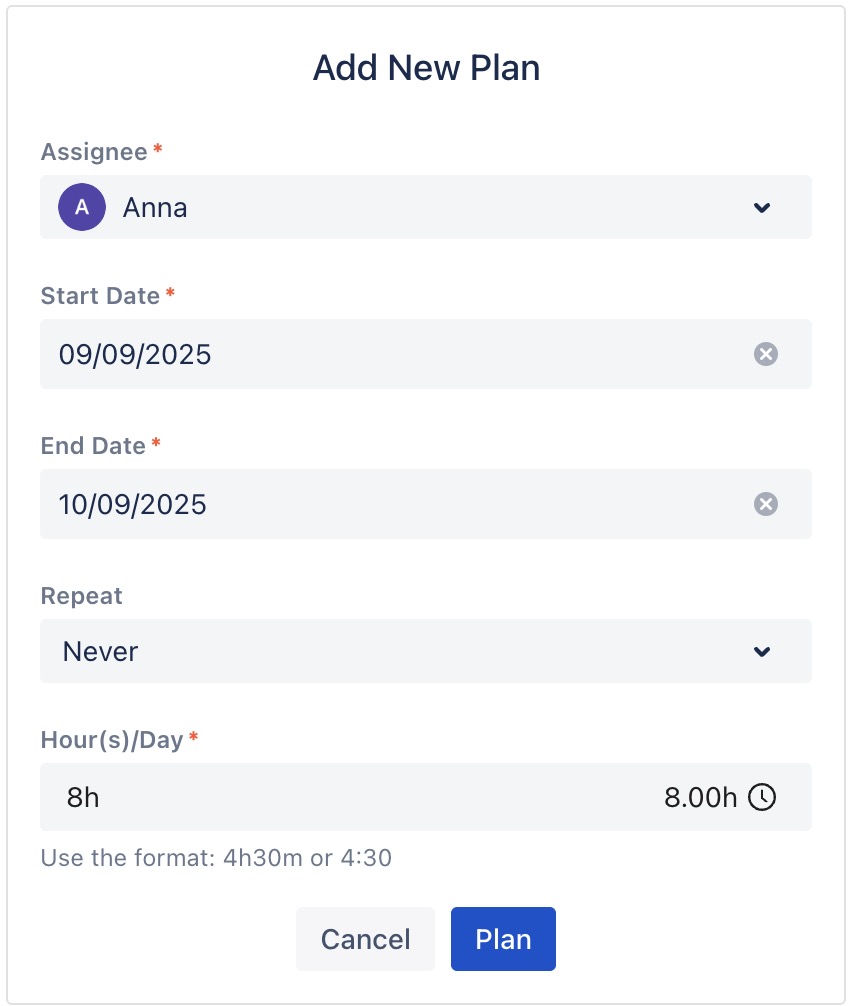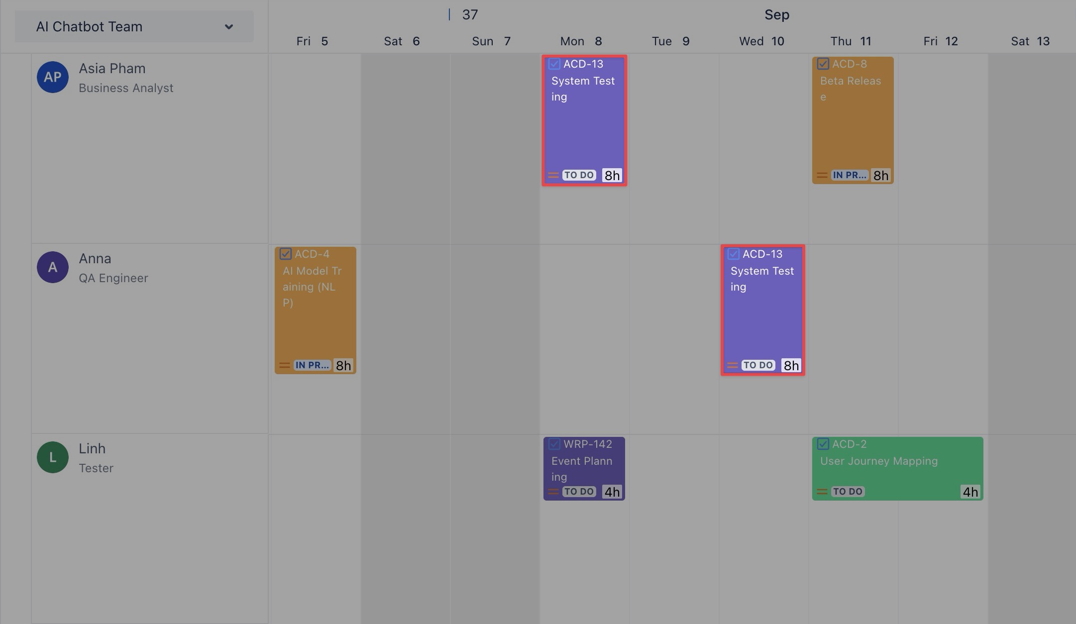 By default, Jira only allows a single assignee for each task. However, TeamBoard TimePlanner enables you to assign a task to multiple assignees. This feature is useful for tasks that require collaboration across different team members, allowing for a more flexible and efficient distribution of work.
