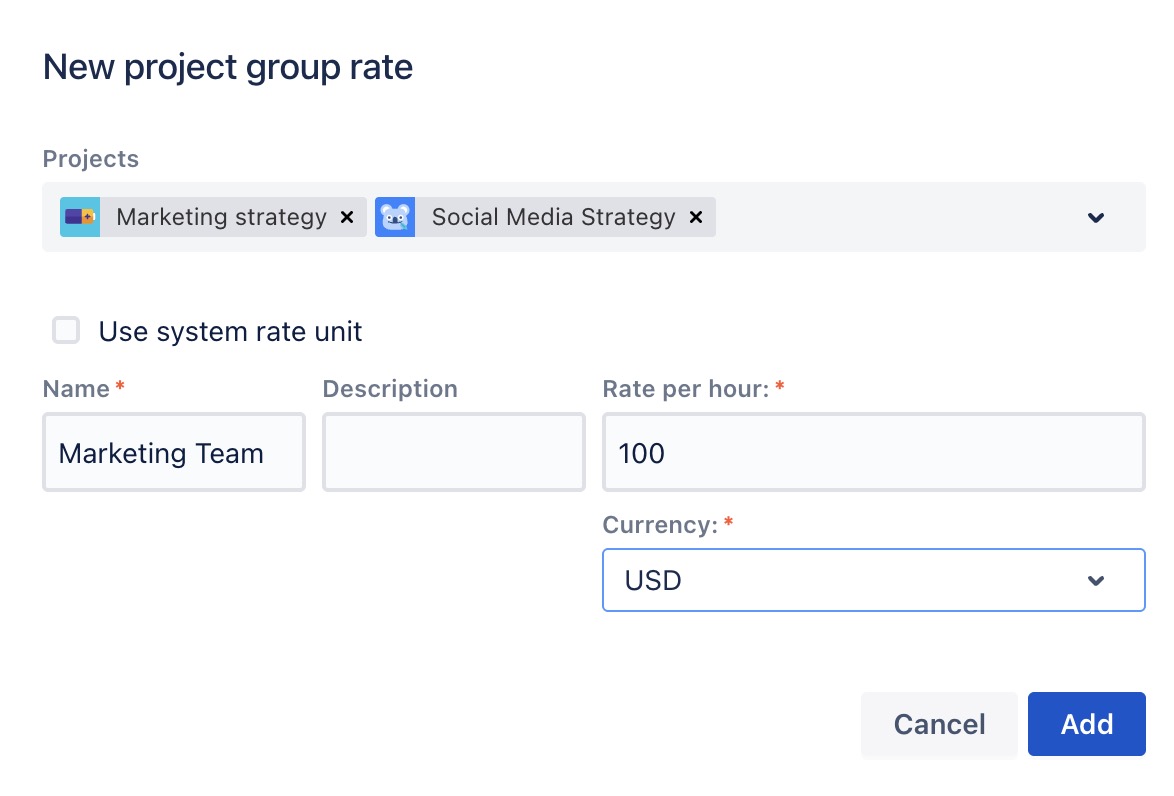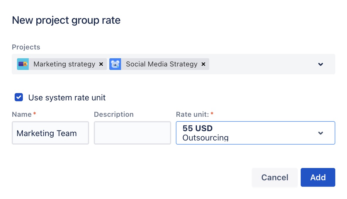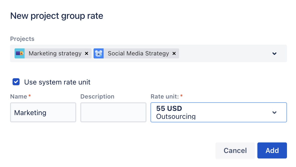 Project: Choose the project for which you want to create the rate from the drop-down list.