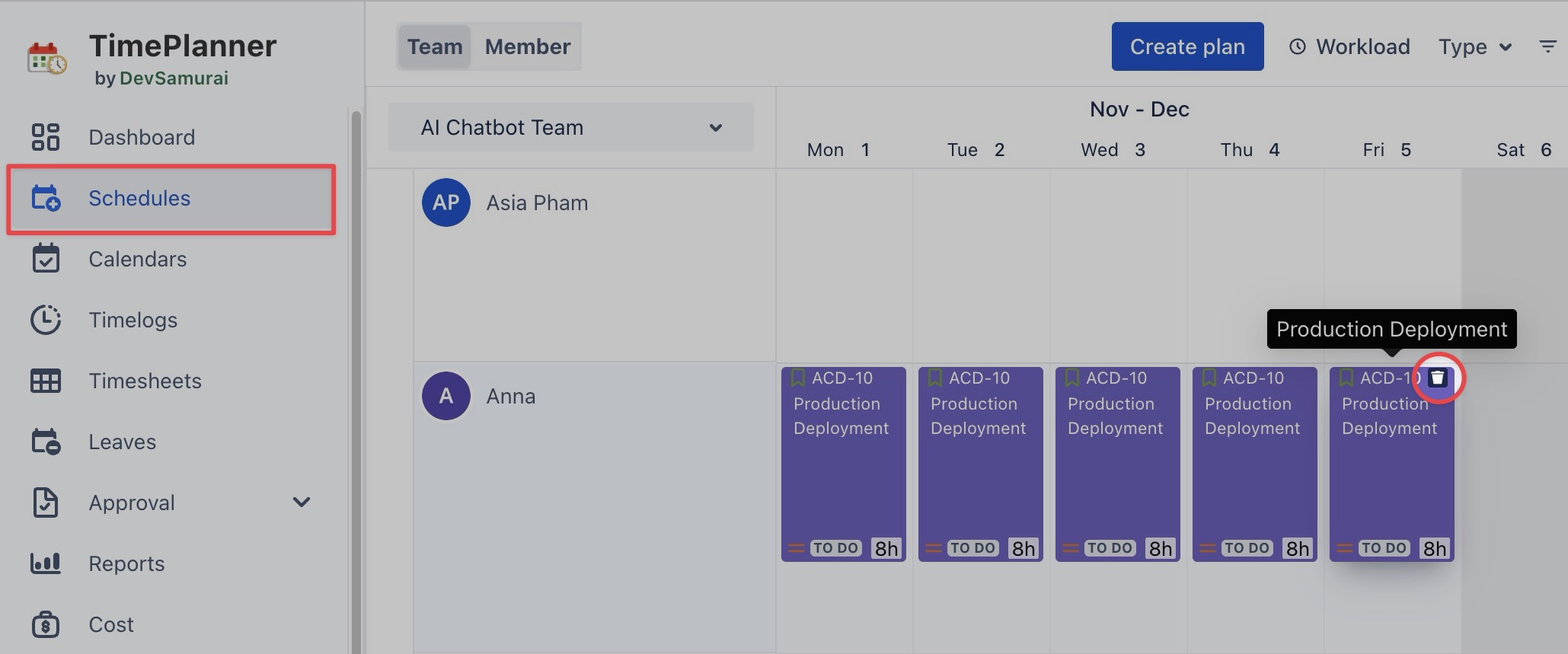 When you remove a plan from the Schedule Board, it only removes the task from the board view — it does not delete the Jira work item.