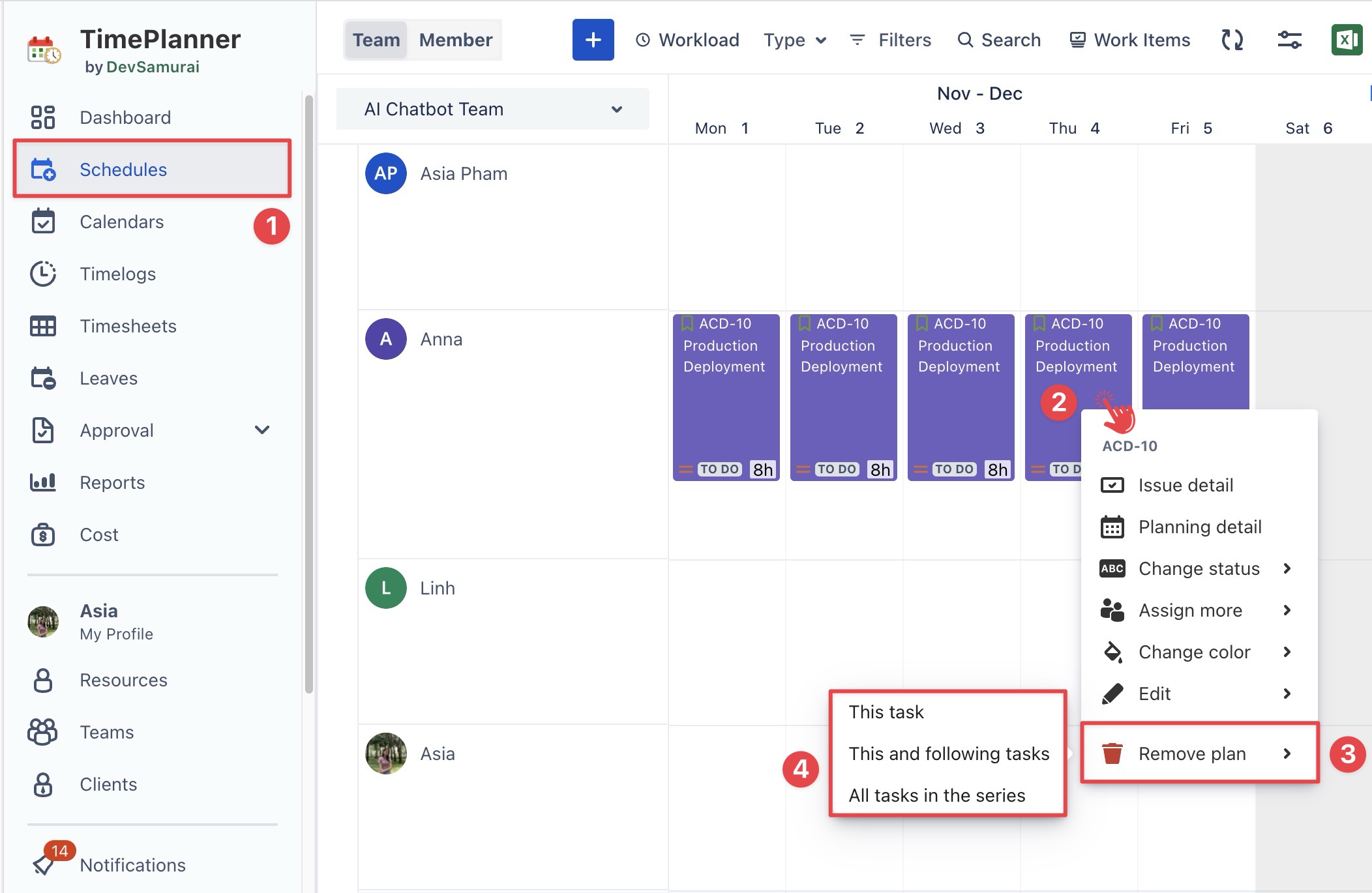 Remove planA prompt will appear asking how you want to remove the task. You’ll have three options: