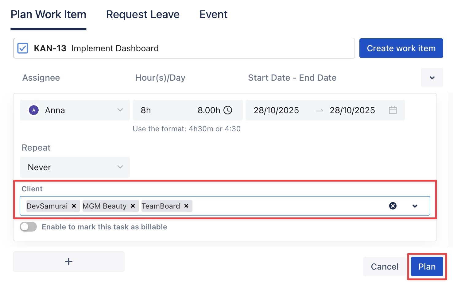 Scheduling tasks for clients in TimePlanner ensures that your projects remain organized, on track, and aligned with client expectations. It also gives you greater control over managing client-related work.