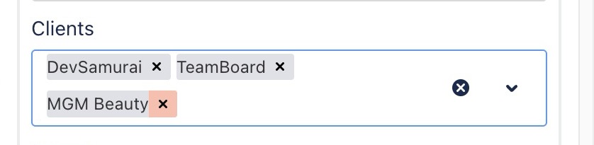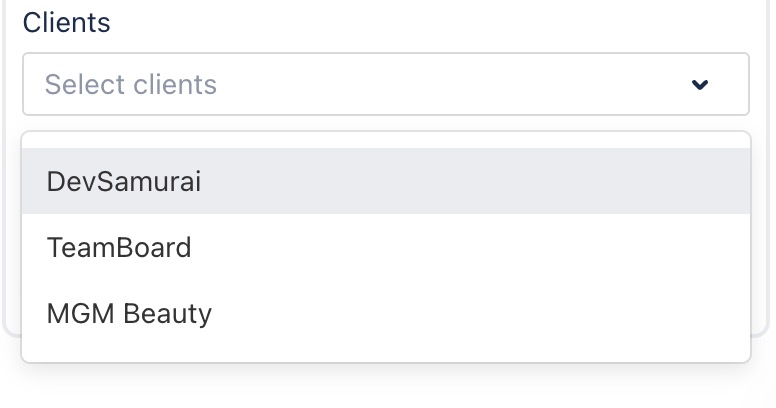 Add Clients: Type the client’s name in the Clients field and select it from the dropdown list.