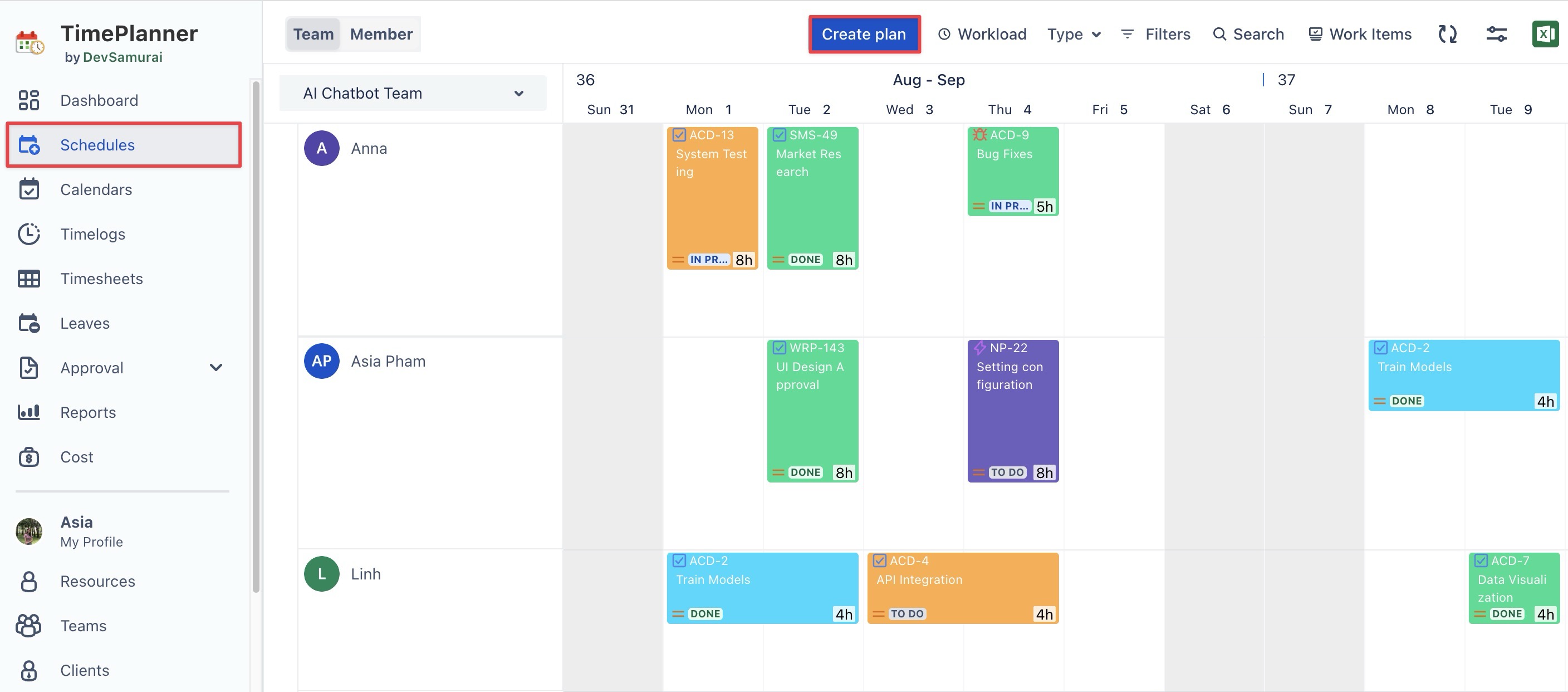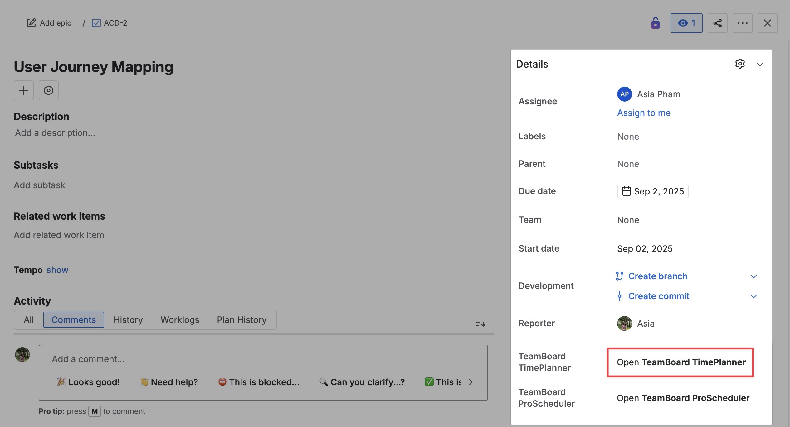 In the right-hand panel, click Open TeamBoard TimePlanner. This will open the planning section for the selected task.