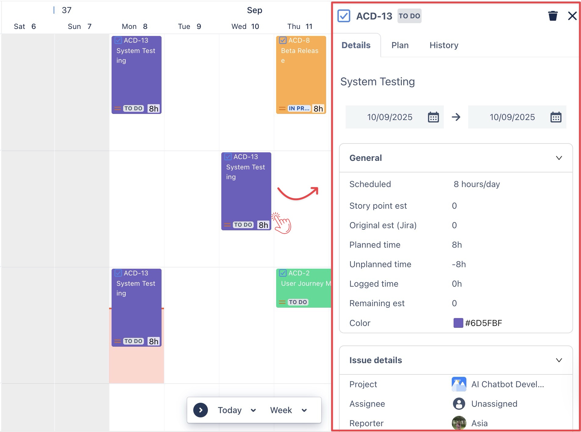 Simply click directly on the task card to open the Planning Detail panel.
