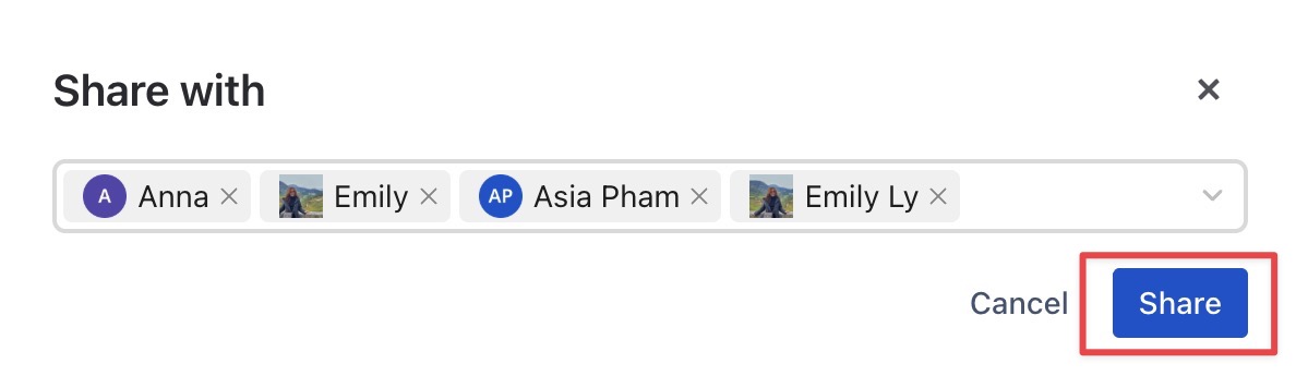 Share icon.In the Share with dialog: