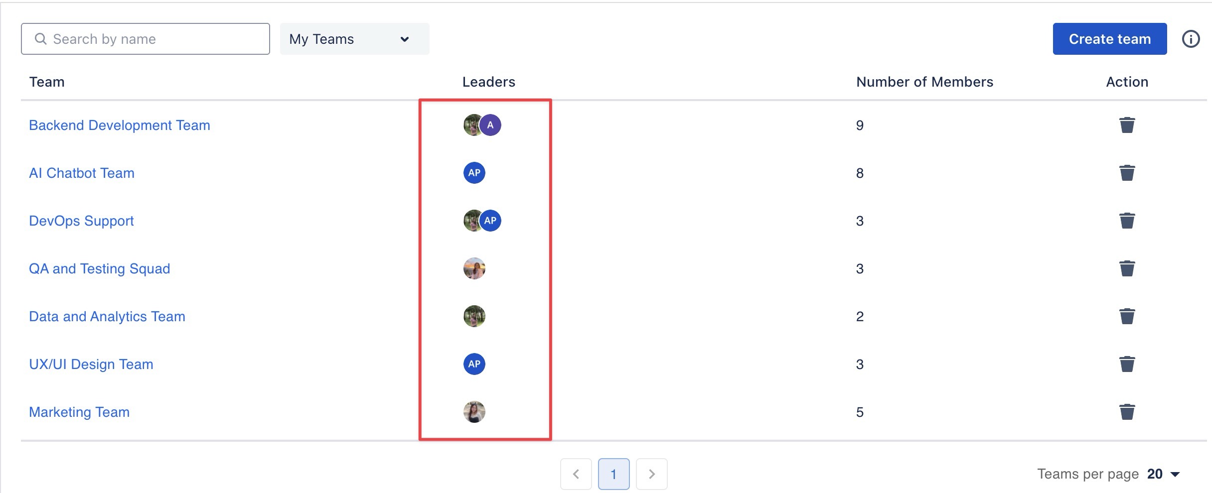 Manage Team: Add or remove members, edit the team name, and assign team leaders.