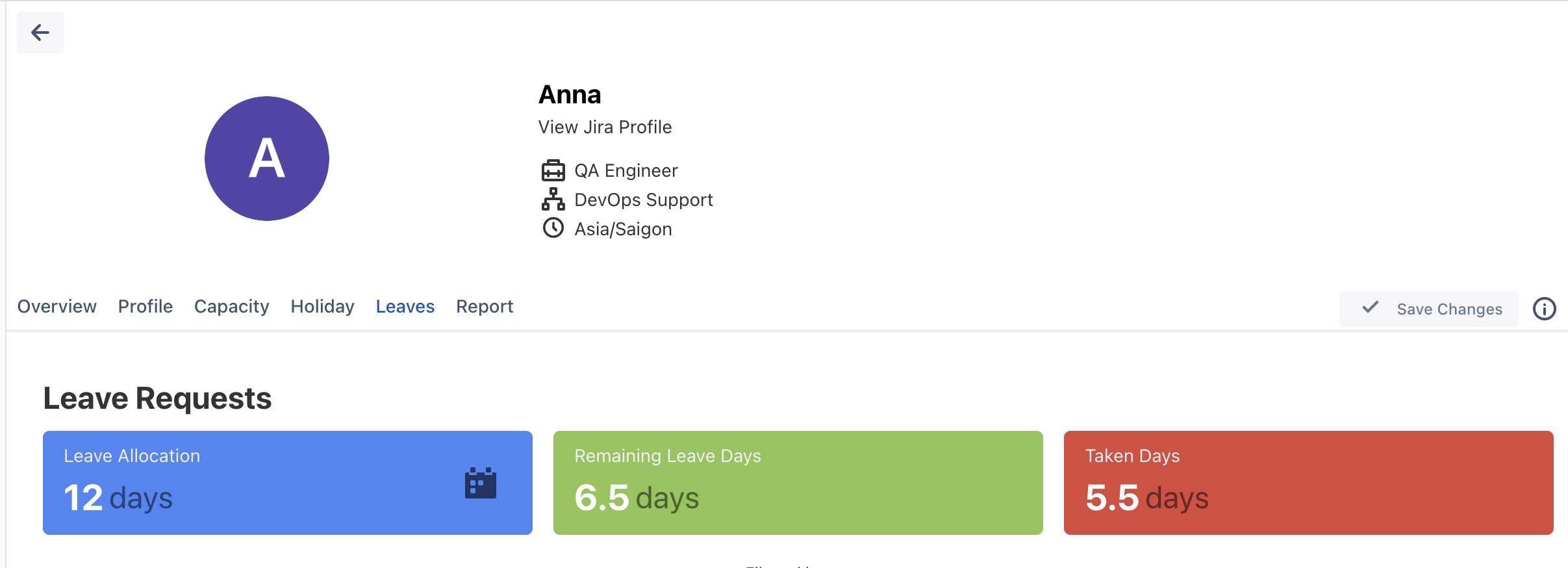 Monitoring Leave Balances: Users can view the number of days taken and the remaining days of leave for team members.