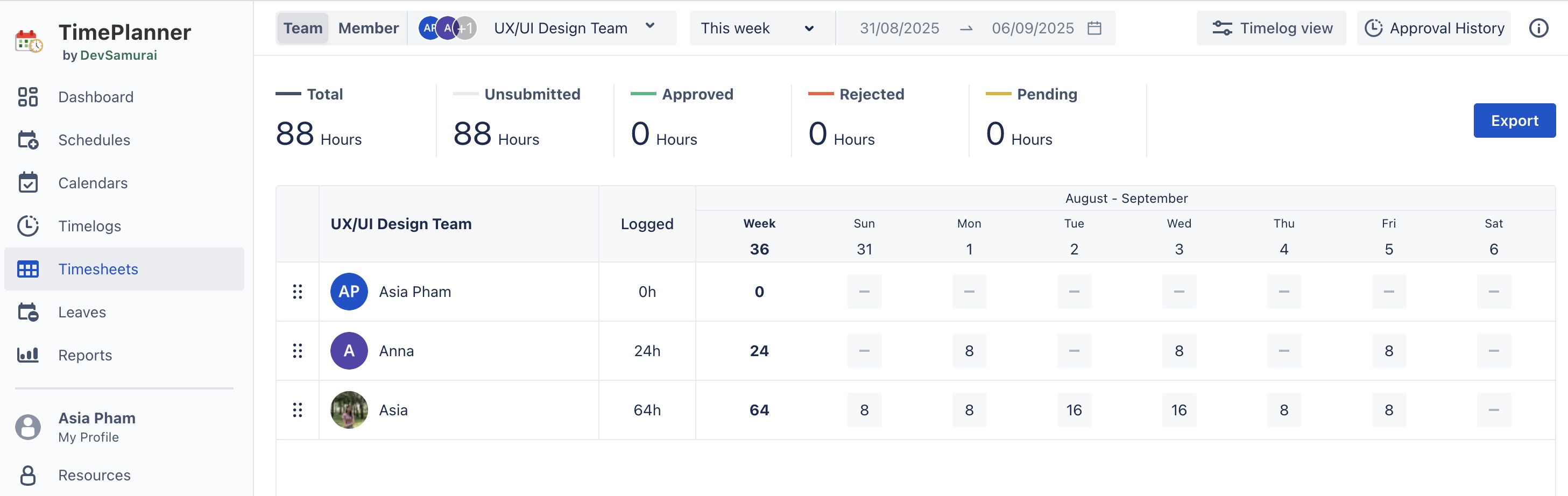 Accessing the Team’s Timesheet
