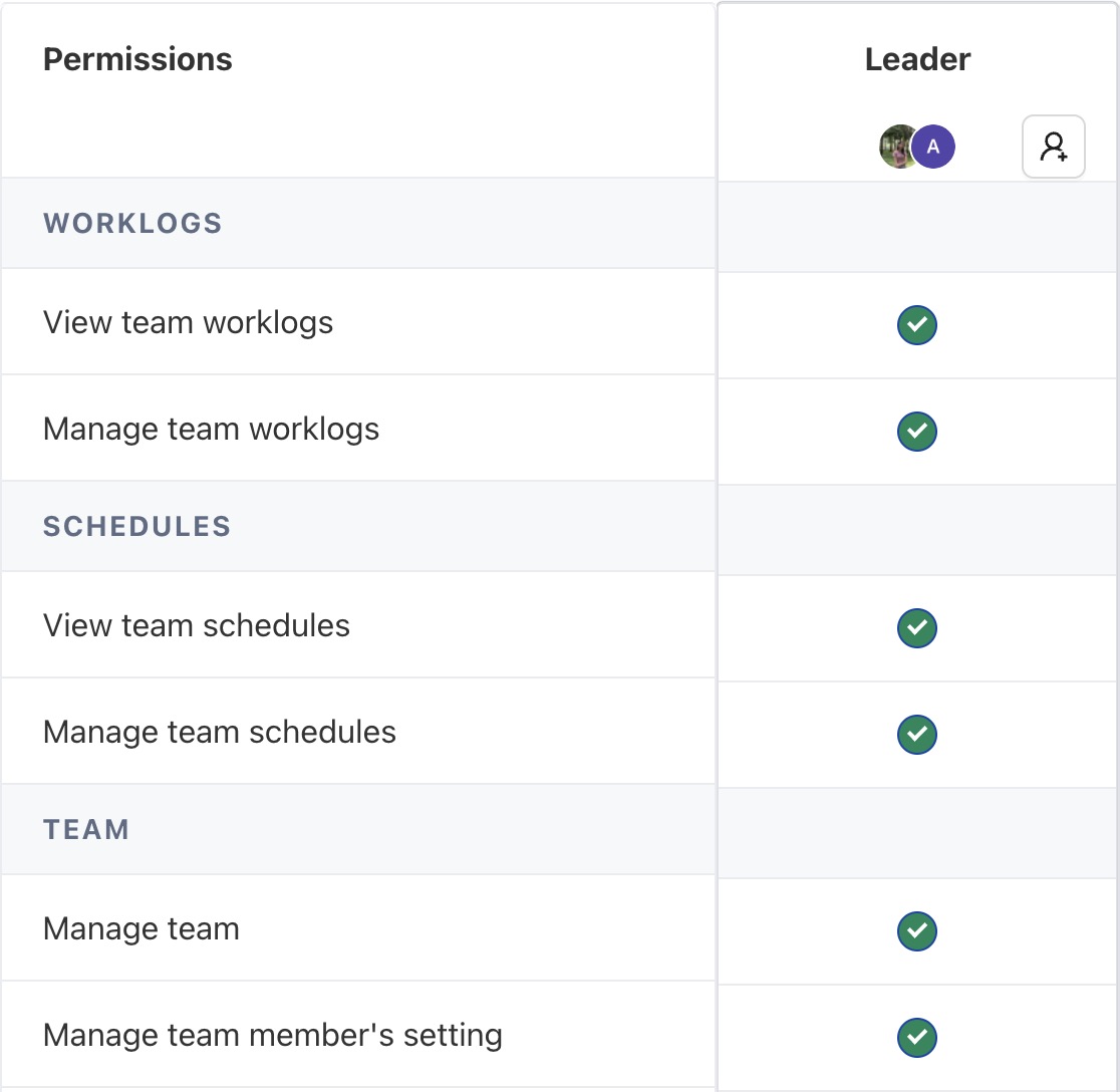 By default, the Team Leader role is enabled with the following permissions: