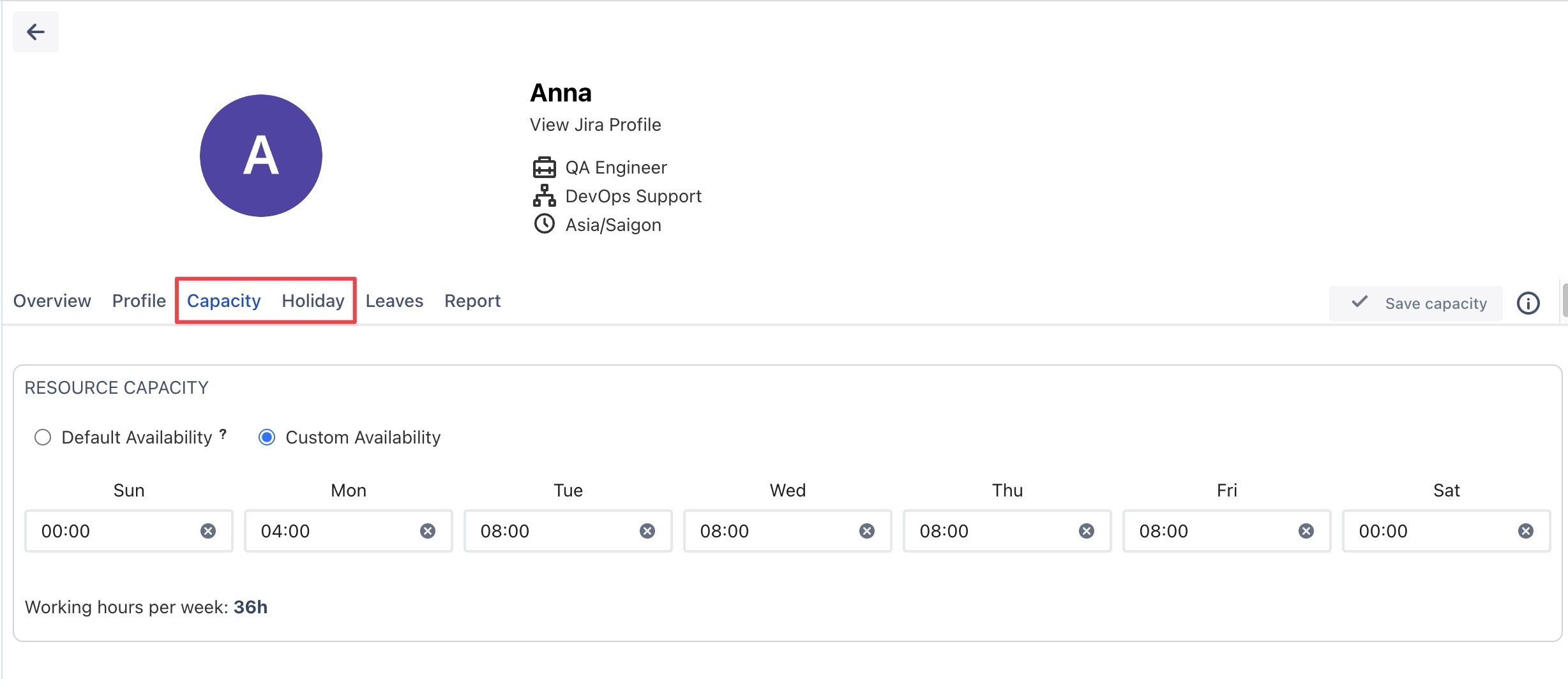 Updating Team Members' Holidays and Capacity: Users can manage and adjust team members’ holiday schedules and availability, ensuring adequate coverage and planning within the team.