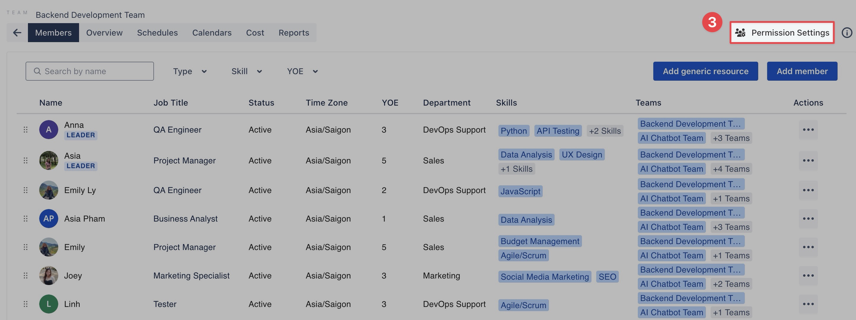 Manage Team Membersโ Settings: Update important details for each member, including: