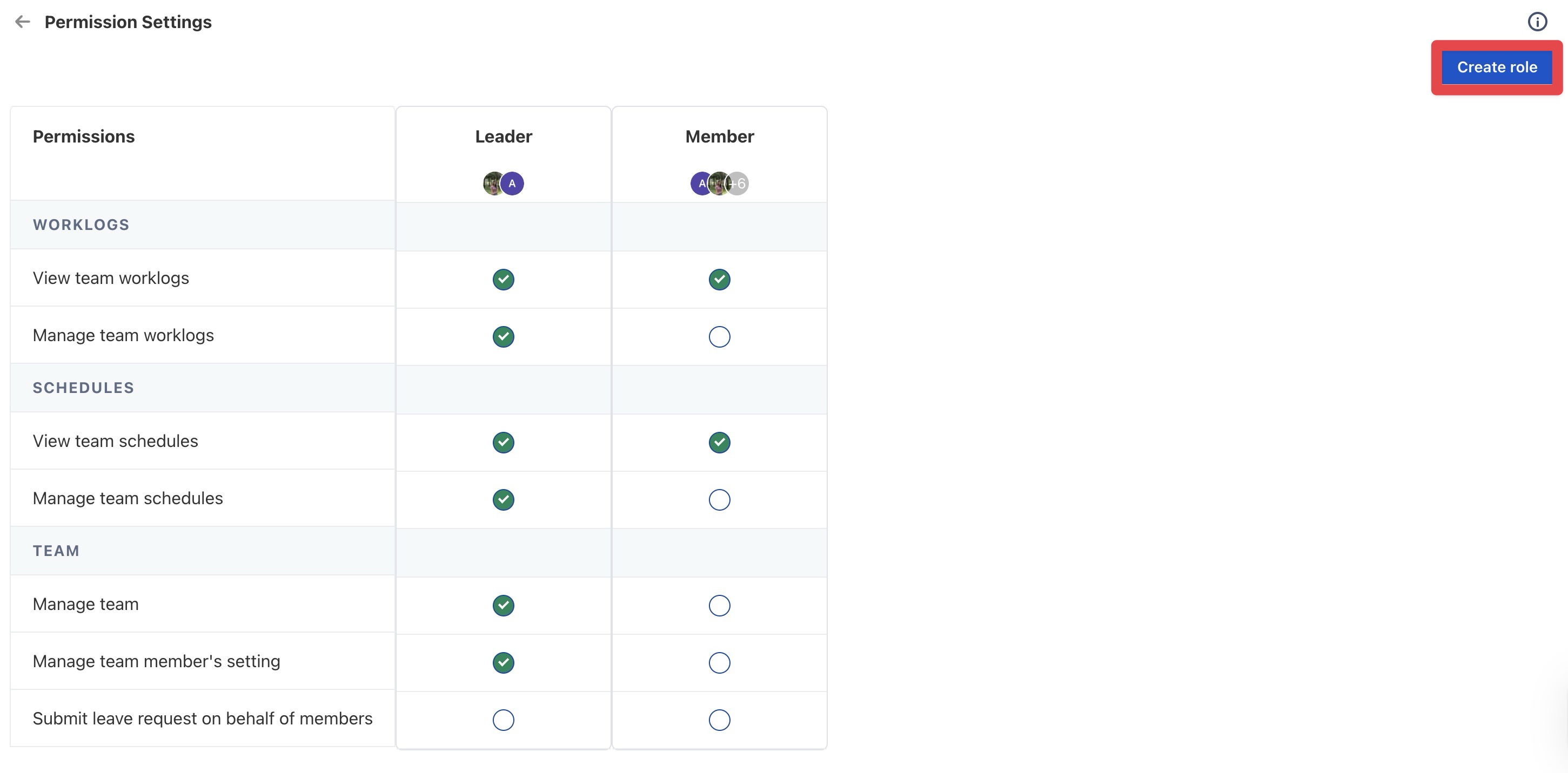 For a detailed list of permissions assigned to team leaders, refer here.