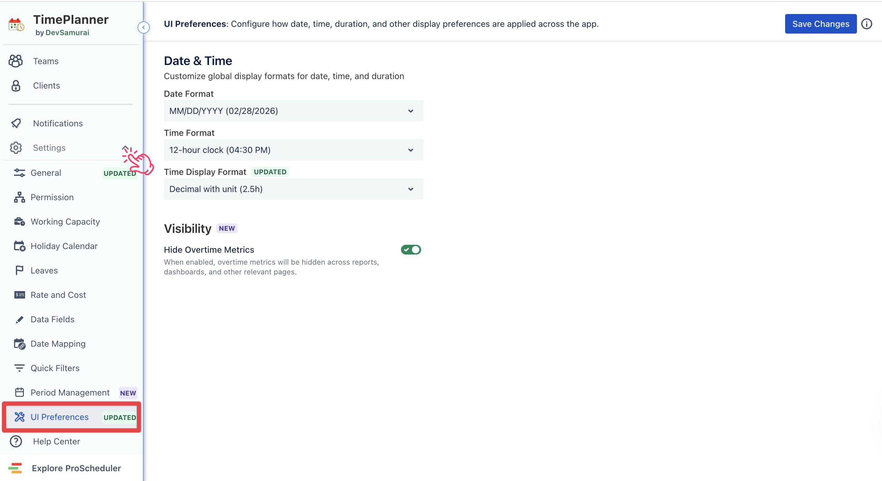 Visibility: Hide overtime calculations and overtime-related metrics across TimePlanner.