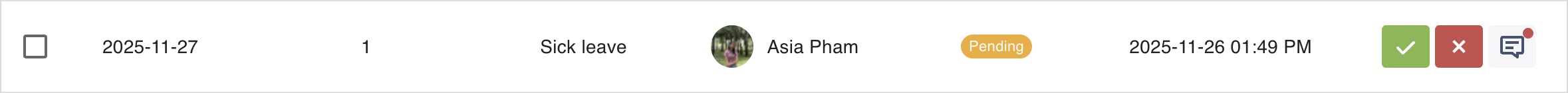 Note: Check the red dot on the message icon; it signals that the leave request includes comments you should review before approving.