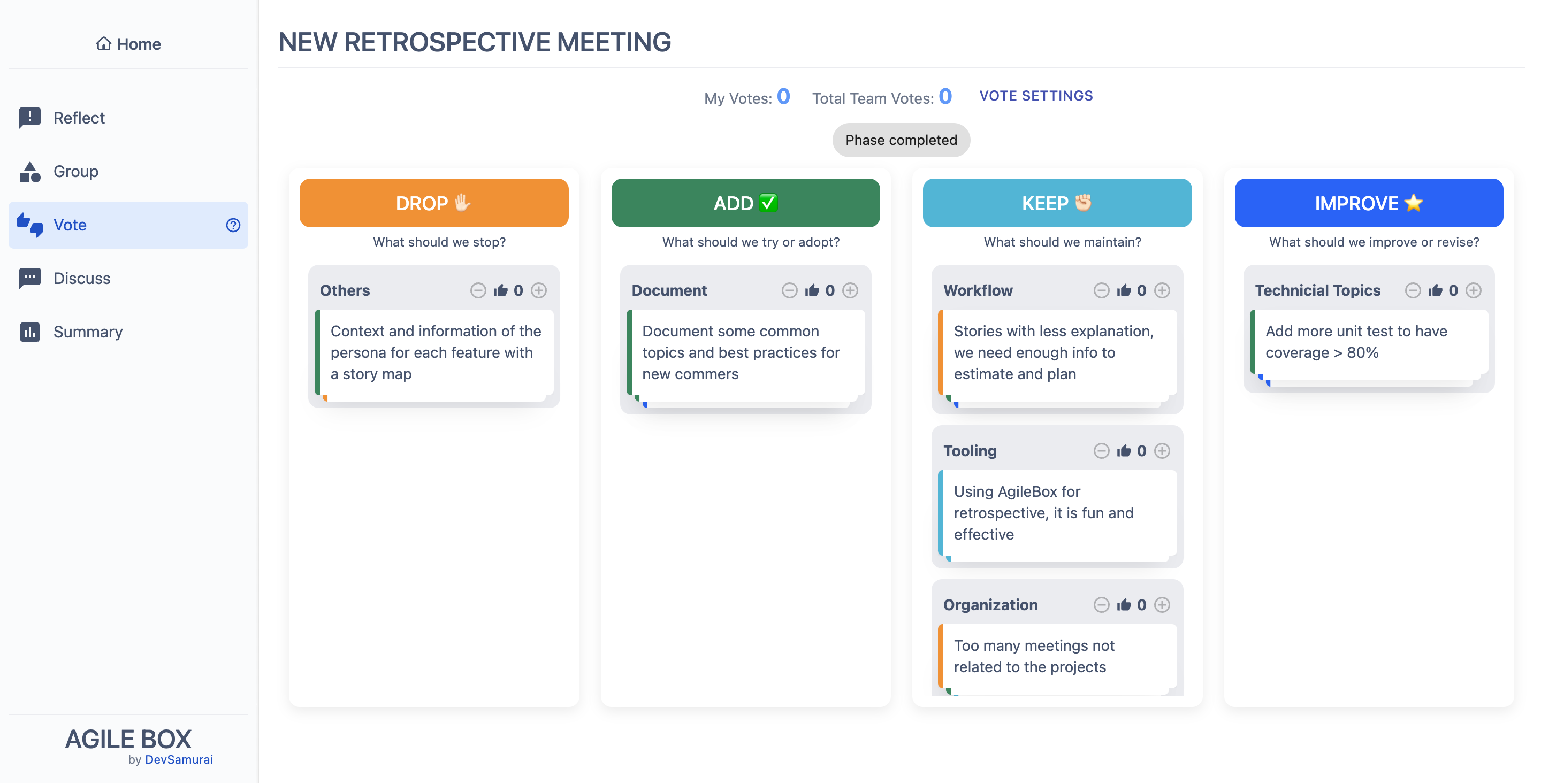 Nevertheless, if you sense that the current format is becoming repetitive and yielding similar outcomes each time, it might be beneficial to introduce some changes. In the current version of AgileBox, we have curated 8 retrospective templates and ideas specifically designed for agile sprints and projects. These resources can infuse your retrospective sessions with excitement and diversity, allowing you to explore new avenues and inject a sense of fun into the process!