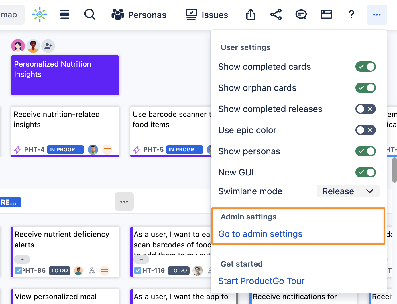 Go to the Admin settings by clicking the Go to admin settings option on the settings menu.