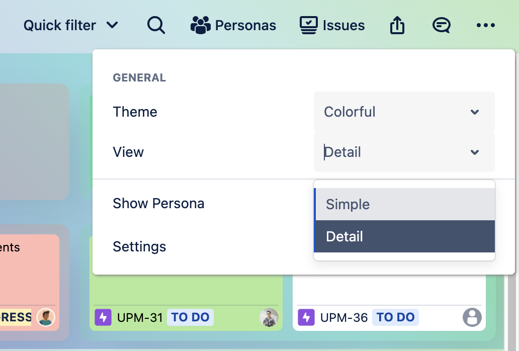 This option allows users to change their cards into a simple view, which only shows the Name and Issue keys on cards for all card levels.