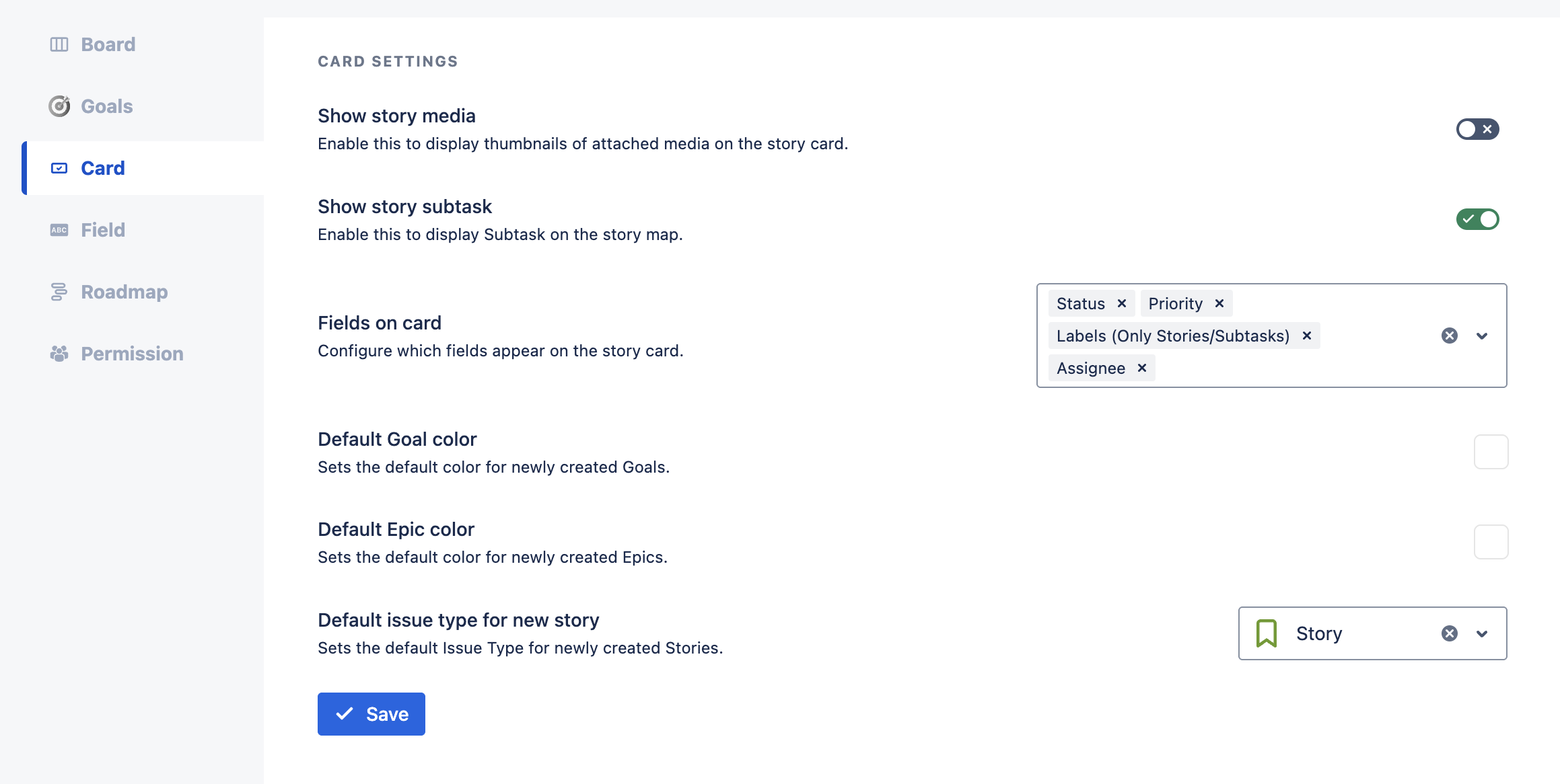 Card admin settings let you control how cards appear and what information they display on your story card.