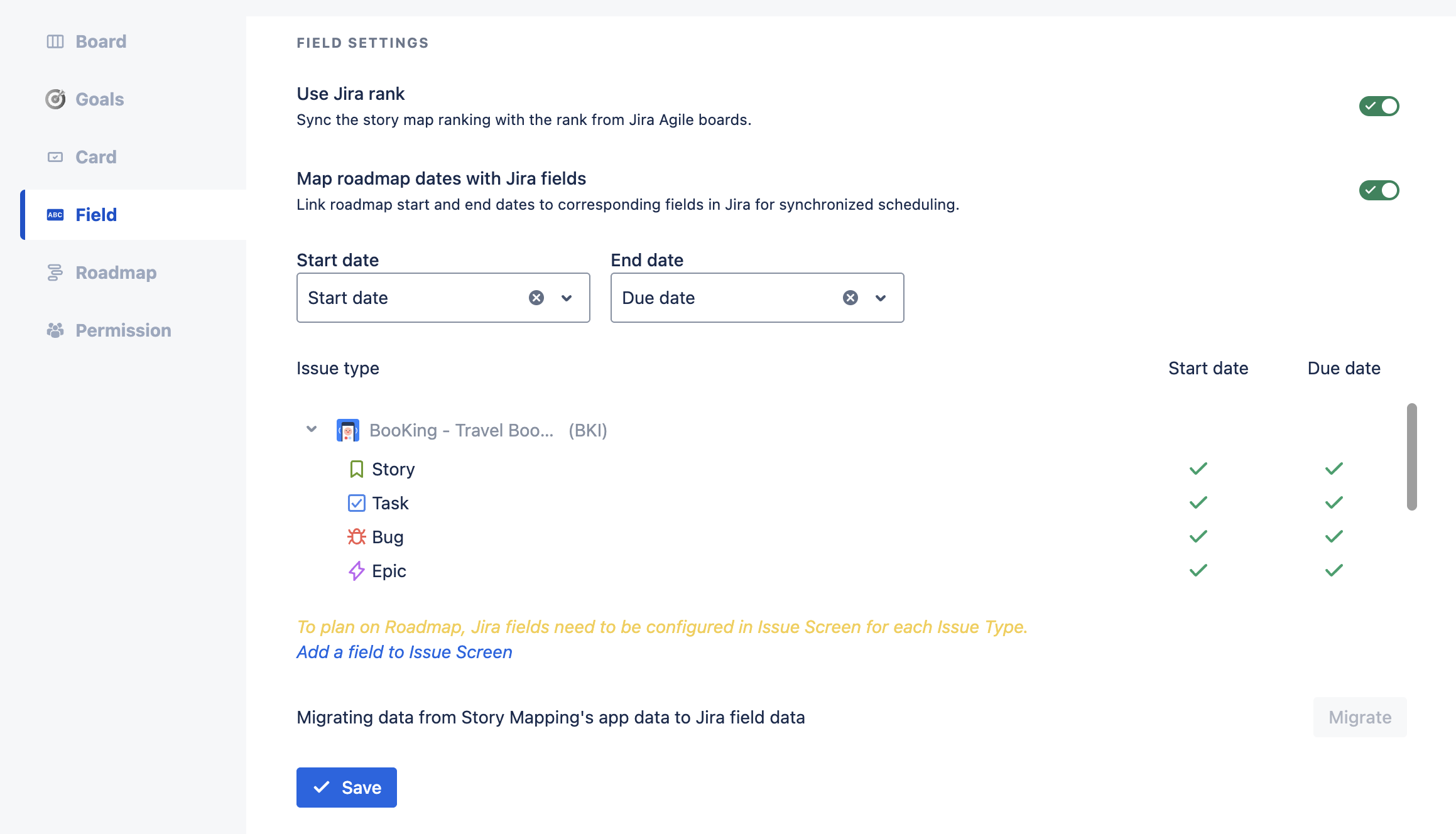 Map roadmap dates with Jira fields
