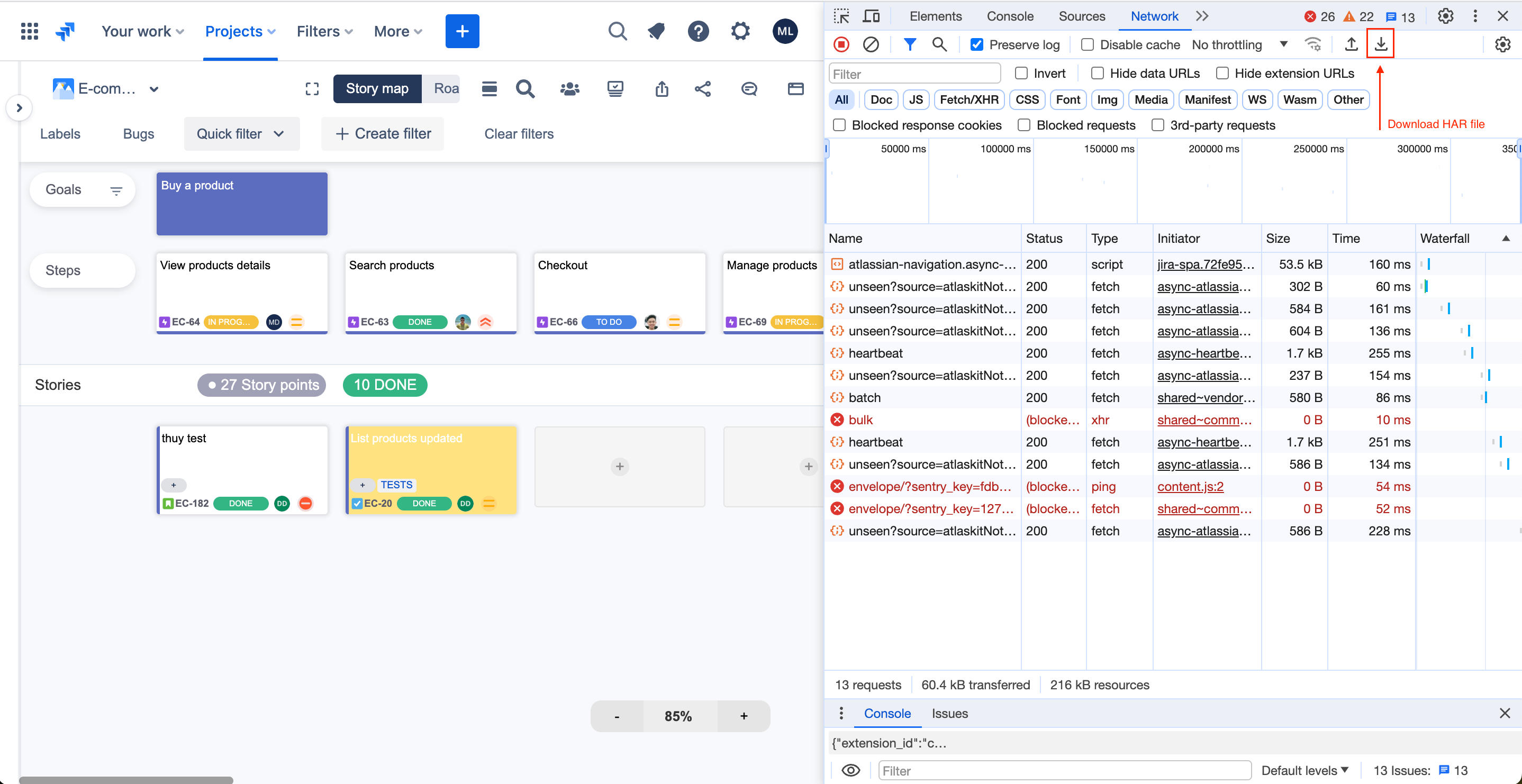 Reproduce your issues. After your issues are successfully reproduced → Click on the download icon to download the HAR file