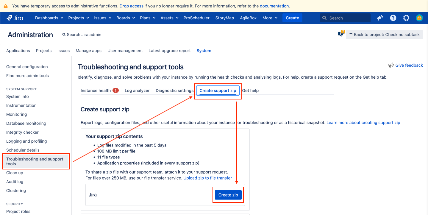 Reproduce your issues. After your issues are successfully reproduced, access Setting → System → open Troubleshooting and support tools tab → switch to Create support zip tab