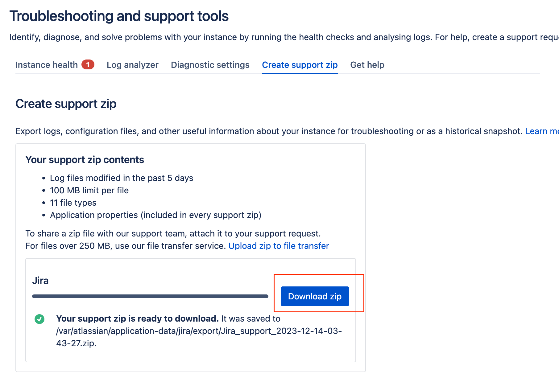 Download support zip file