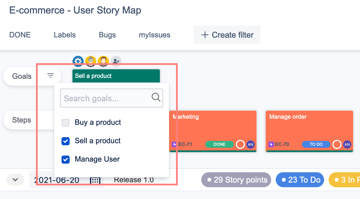 Filter Goals: you can choose to display or hide Goals