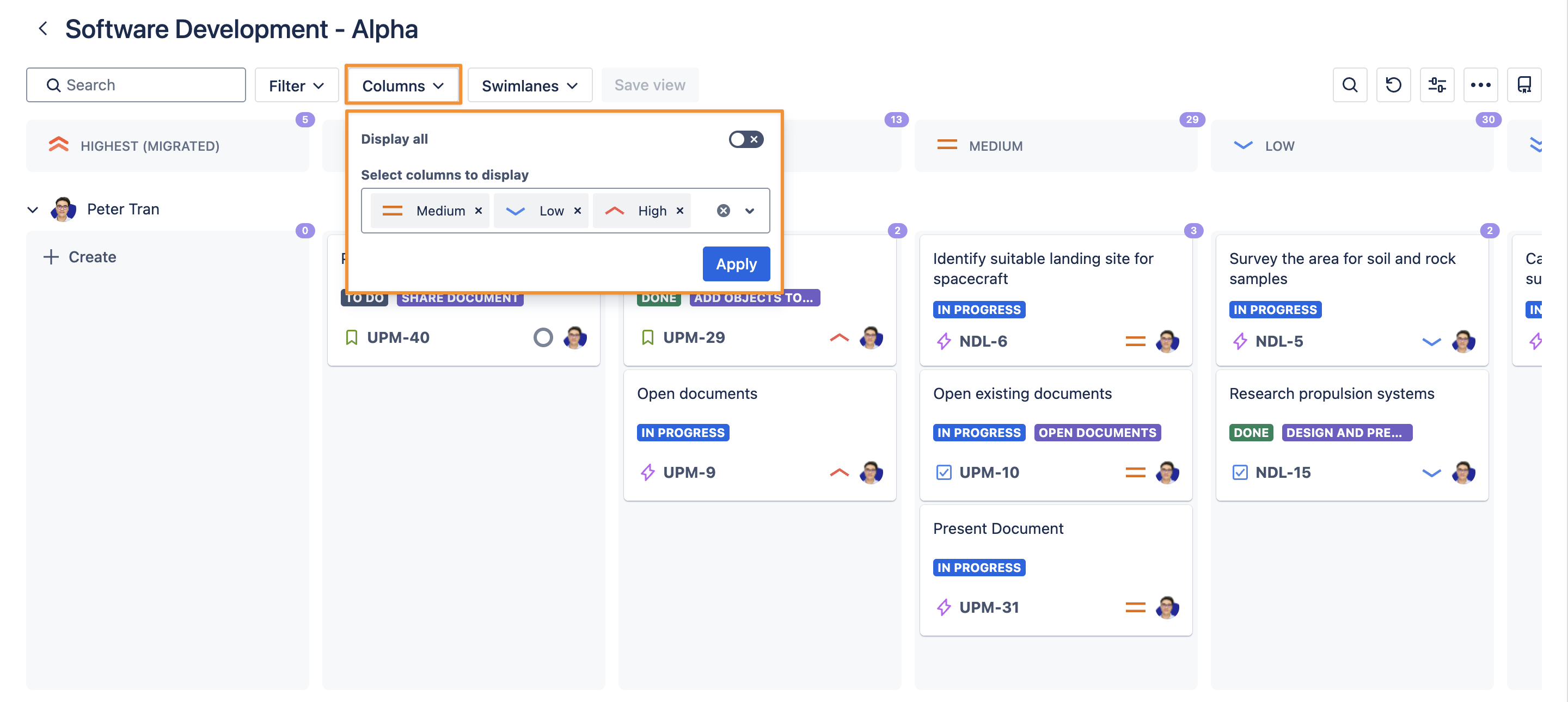 You can control which columns are displayed on your board to focus your view.