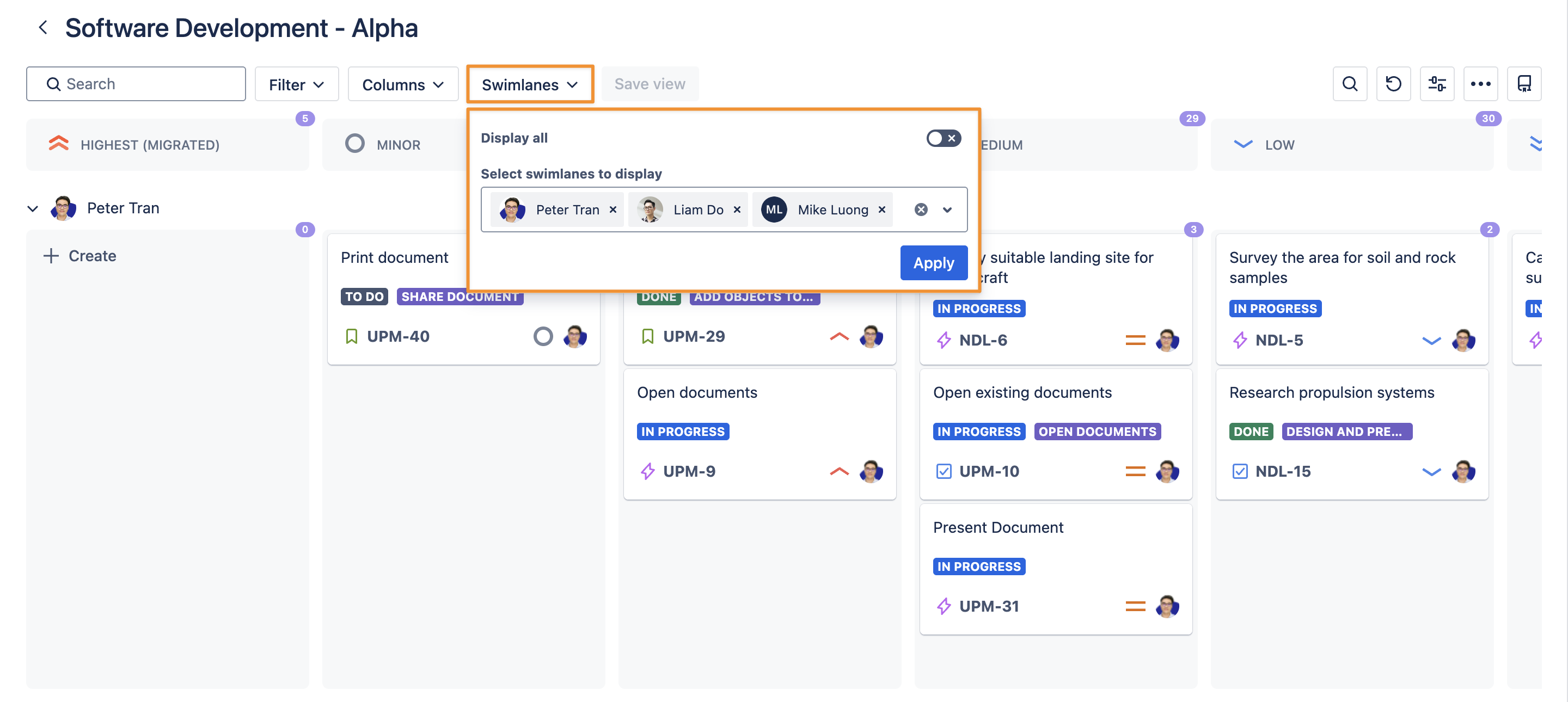 Similarly, you can choose which swimlanes are visible on your board.