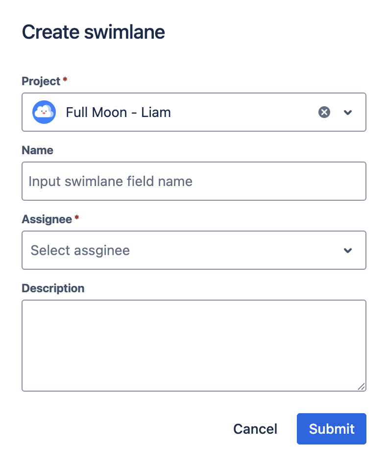 Project: Select the project the swimlane belongs to.